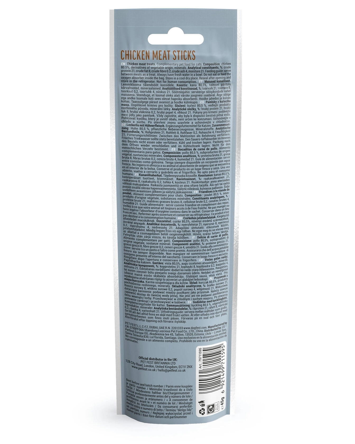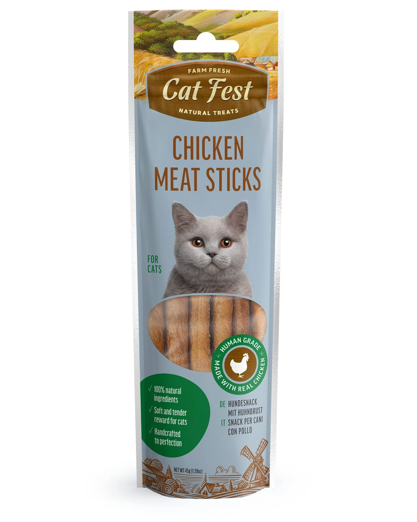 Probably the most popular cat treats made of real meat. Tender and juicy with a rich natural smell and taste. Some cats even "hunt" them before enjoying the meal.