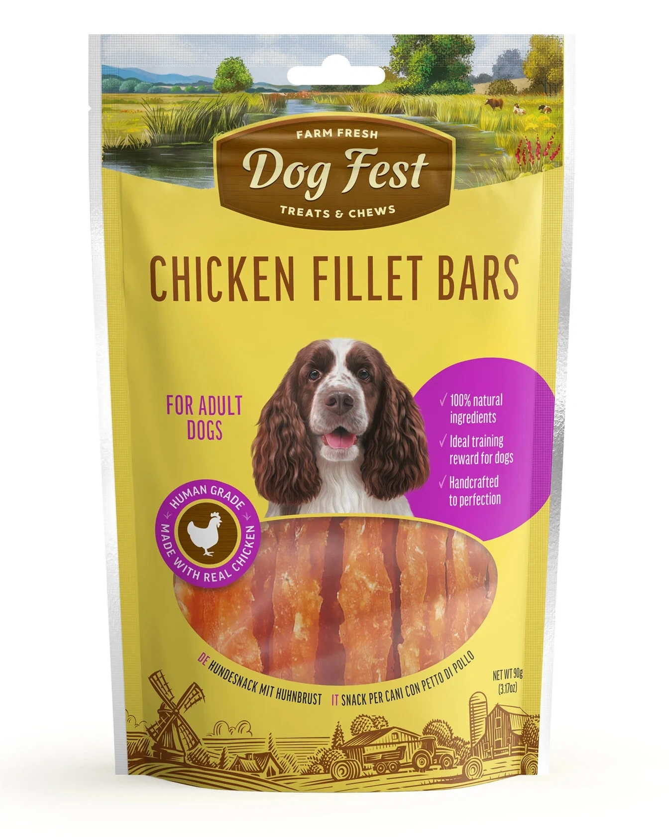 These chicken bars are made of pure chicken fillet parts. Chewy, easy to break into smaller pieces, they always come in handy. No dog can resist.