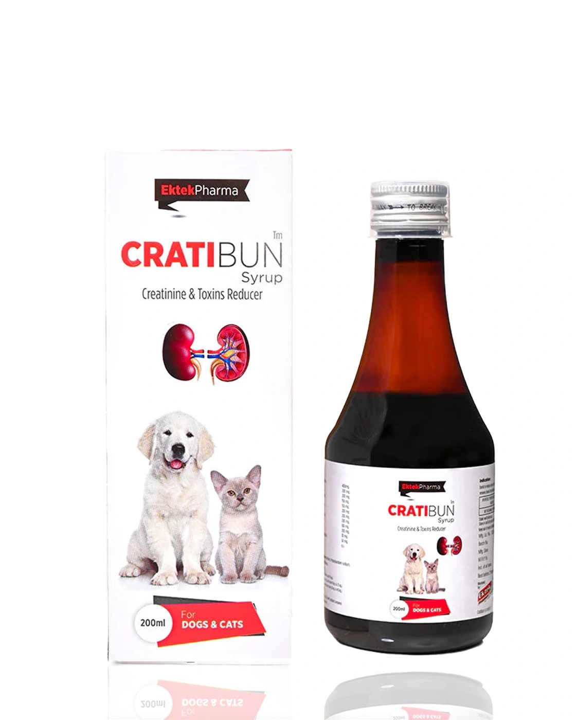Cratibun Syrup is a specialized veterinary formulation designed to support kidney health in dogs and cats. It helps reduce elevated urea and creatinine levels, promotes diuresis, and aids in the removal of harmful toxins from the kidneys. By supporting renal function, this syrup contributes to overall well‑being and vitality in pets suffering from kidney‑related concerns.