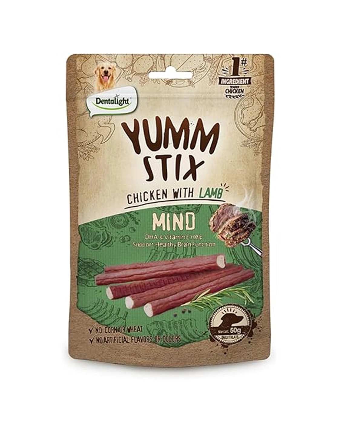 Dentalight Yummy Stix Chicken with Lamb are premium, soft and chewy dog treats made with real chicken fillet and lamb. The star‑shaped design helps reduce plaque and tartar buildup through natural chewing action, supporting dental health. This grain‑free formula contains no corn, wheat, artificial flavors, or colors. Enriched with Omega 3 & 6 fatty acids for healthy skin and a shiny coat, plus DHA and Vitamin E to support brain function. A delicious, natural reward for dogs of all sizes.