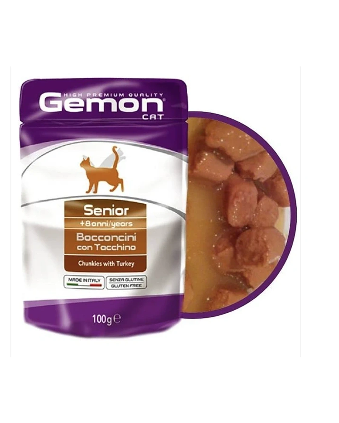 Gemon High Premium Quality Senior cat food with turkey 100 gram is a line of complete pet foods crafted with the highest quality raw materials, dedicated to the daily wellness of your cat. Special products formulated with valuable ingredients, rich in proteins, vitamins, and essential minerals to ensure healthy and balanced growth over time. Recipes are adapted to lifestyle and age, covering all specific nutritional needs. Gemon dry food contains fresh meat, is made in Italy, and is cruelty‑free. Gemon with turkey is a complete food for senior cats, formulated to provide all necessary nutrients for daily vitality.
