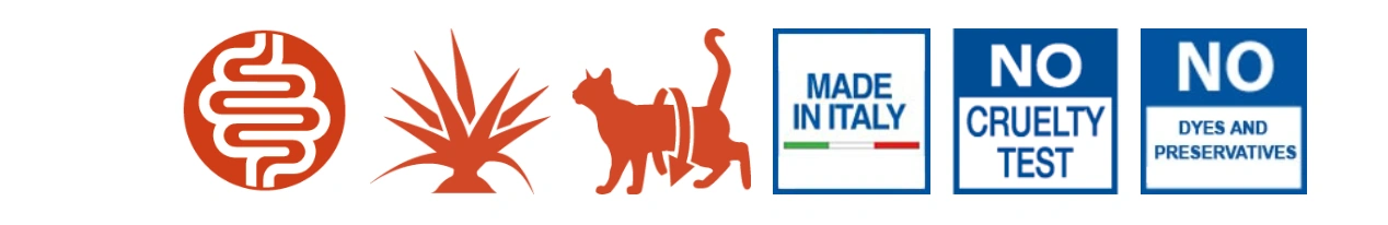 Composition: Cereals (rice 4%), meat and animal derivatives 41% (fresh turkey meat 8%), oils and fats (salmon oil 1%), fish and fish derivatives, vegetables (beet pulp 1%), minerals, derivatives of vegetable origin (fructo-oligosaccharides FOS 0.5%, yucca schidigera 0.1%), yeasts (mannan-oligosaccharides MOS 0.5%).