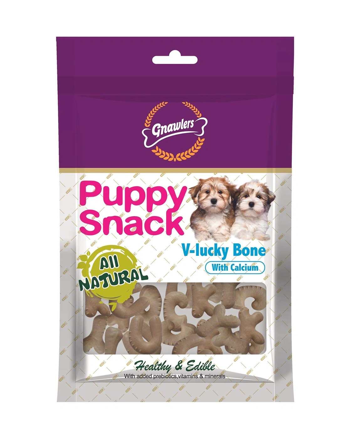 Gnawlers V‑Lucky Bone is a popular, all‑natural dog treat designed specifically for puppies and small breed dogs. Available in chicken or milk flavour, this 270g bone‑shaped chew acts as a nutritious, digestible snack that supports dental health by reducing plaque and tartar. Enriched with calcium, phosphorus, and vitamins, it helps strengthen bones and joints while satisfying your dog’s natural urge to chew. Crafted to be gluten‑free and easily digestible, it’s a healthy daily reward for small companions.