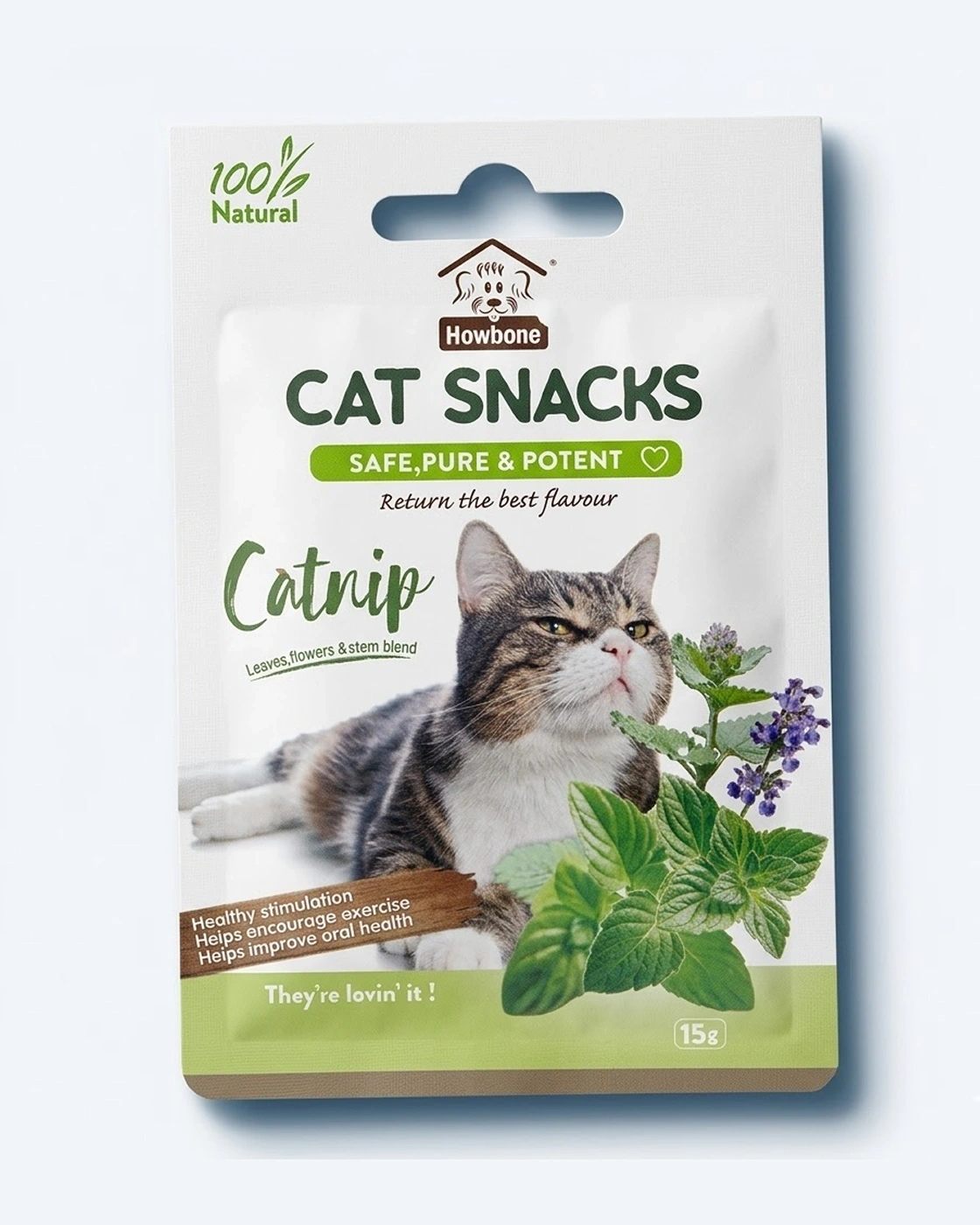 Howbone Cat Snack Catnip is a 100% natural, premium catnip blend consisting of dried leaves, flowers, and stems, designed to stimulate and entertain cats of all ages. Hand‑harvested at peak essential oil condition for high potency and long‑lasting aroma, this pure herb from the mint family encourages play, exercise, and enrichment. Sprinkle on toys, scratchers, or floors to bring out your cat’s natural playful instincts. Safe, pure, and potent.