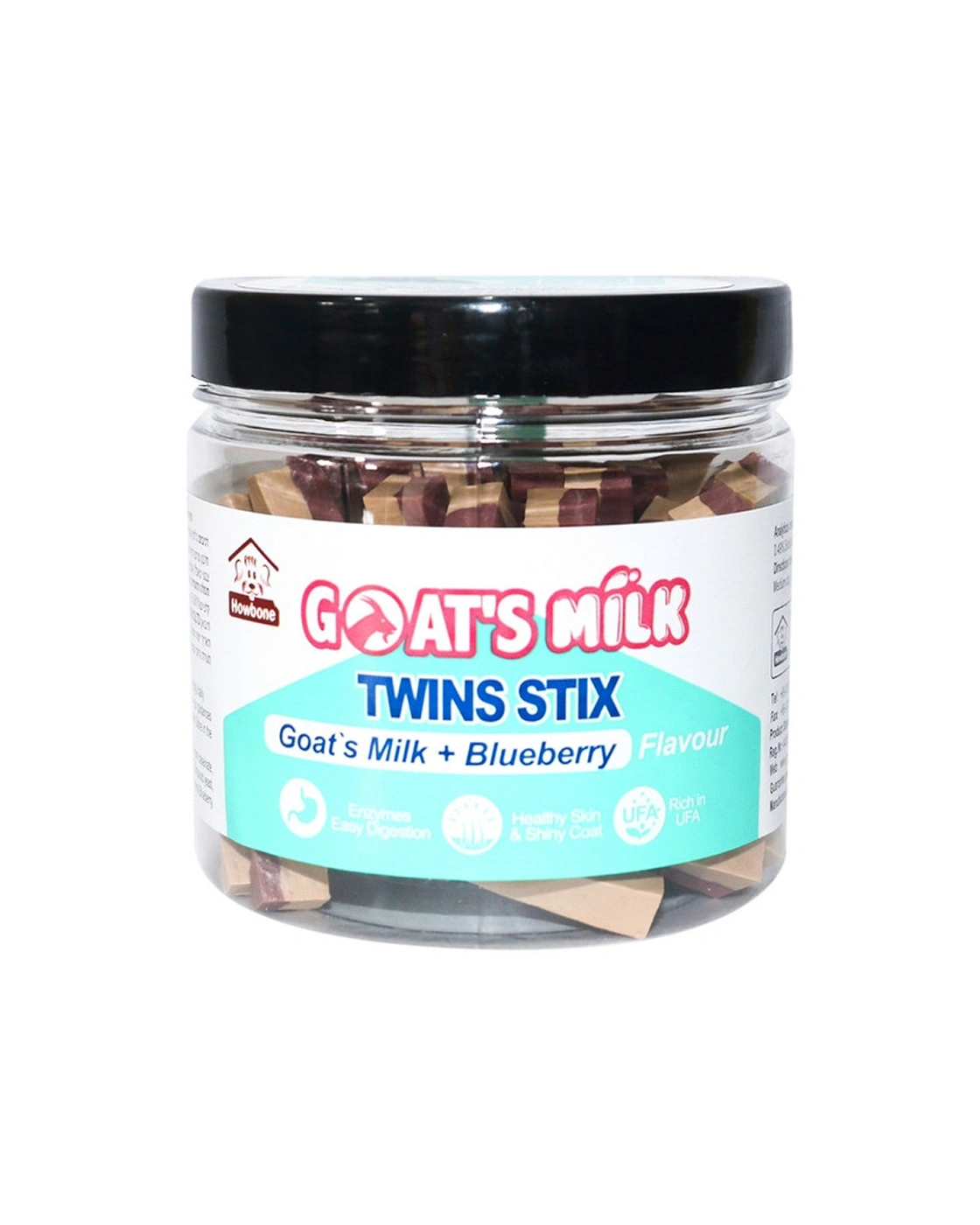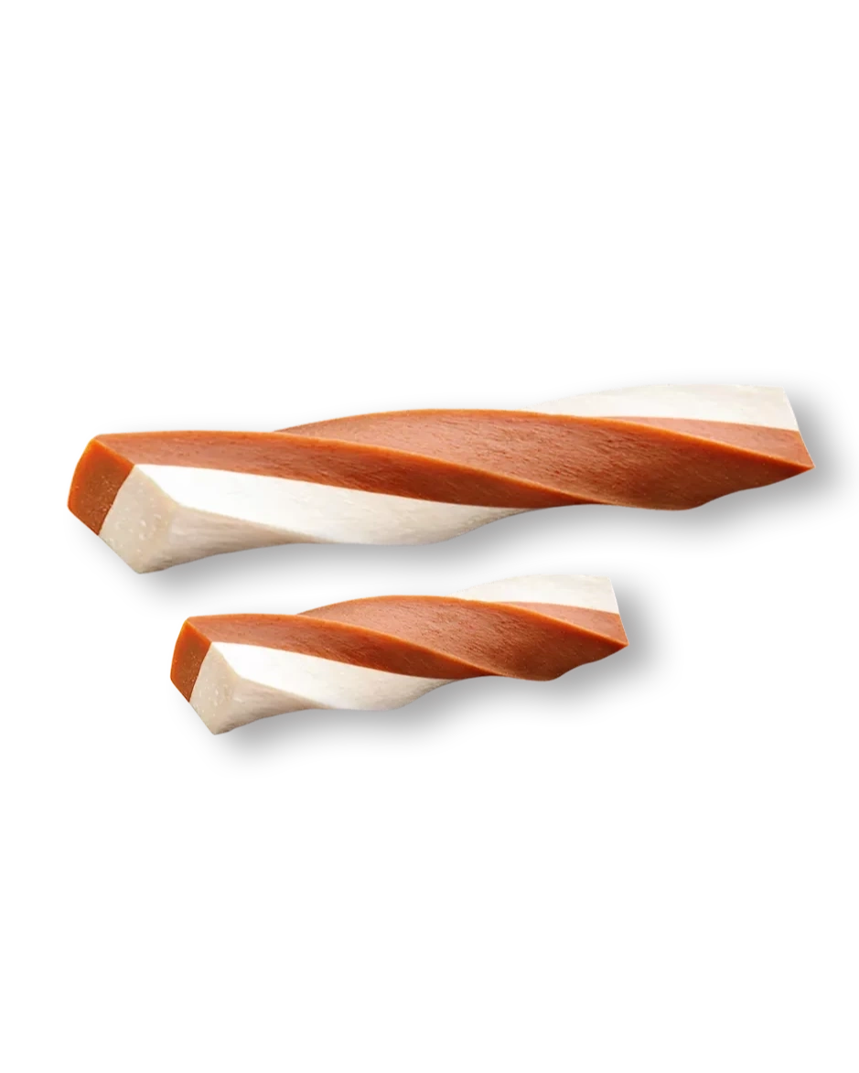 Howbone Twins Stix Berry & Goat Milk are nutritional, two‑in‑one twist sticks designed to support dental health and overall wellness in dogs. These highly digestible, low‑fat treats combine premium goat milk for calcium and easy digestion with berry flavors (blueberry, raspberry) rich in vitamins. The dual‑flavor twisted stick form encourages chewing action that helps scrape away tartar and plaque, while strengthening bones, teeth, and promoting healthy skin and coat. Made without added sugars or artificial preservatives.