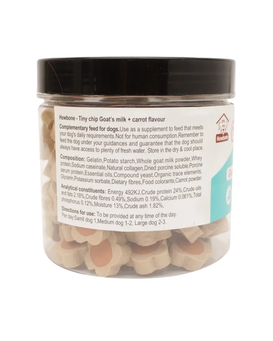 Goat milk powder, carrot, potato starch, oat fiber, digestive enzymes, calcium, taurine, unsaturated fatty acids, and natural ingredients. Full ingredient details available on product packaging.