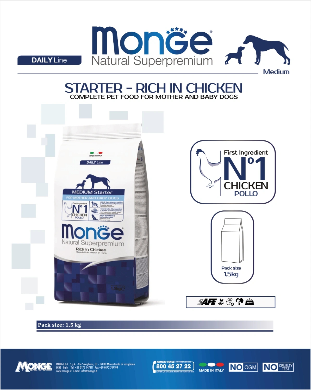Answer: This specific formula is optimized for medium-sized breeds (adult weight 10-32 kg). For very small or giant breeds, we recommend the specific Monge Mini or Maxi ranges.