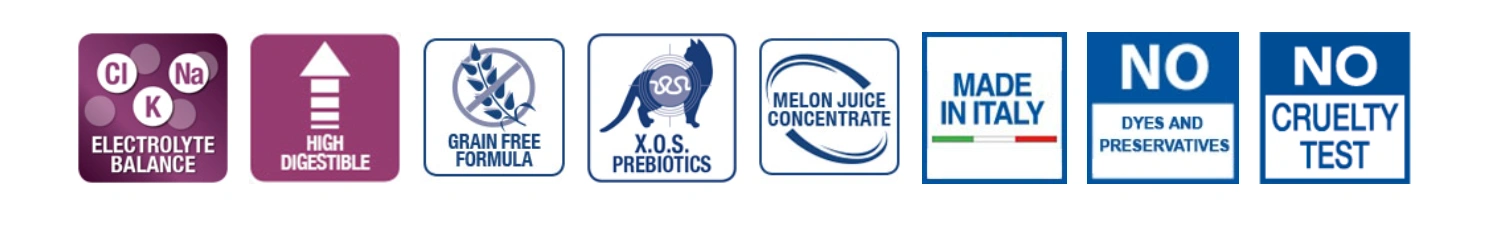 Monge VetSolution Gastrointestinal Feline is a complete dietetic feed for cats formulated for the reduction of intestinal absorptive disorders. This highly digestible recipe features dried meat and hydrolysed salmon protein as primary ingredients, with increased levels of sodium and potassium to support electrolyte balance. Enriched with Xylo‑oligosaccharides (XOS) to secure the intestinal microbiota, horse chestnut for intestinal support, and melon juice concentrate to neutralize free radicals.