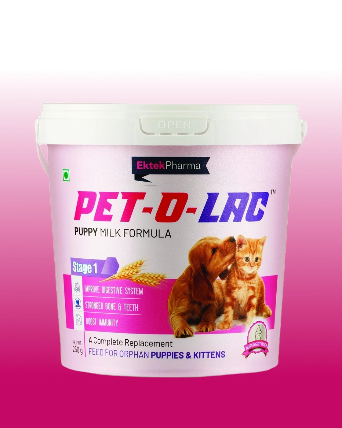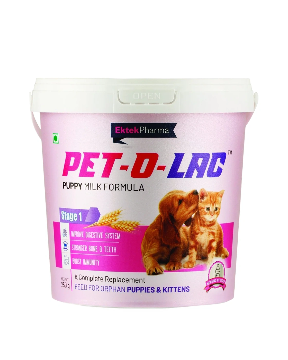 Pet‑O‑Lac (Stage 1) Puppy Milk Formula is a complete replacement feed for orphan puppies and kittens, designed to substitute or supplement breast milk during the critical early weeks. Enriched with natural vitamins, minerals, amino acids, and weaning supplements, it supports healthy growth, strong metabolism, and proper development. This versatile formula is ideal for very small or rejected newborns that require a nutritionally balanced milk substitute.