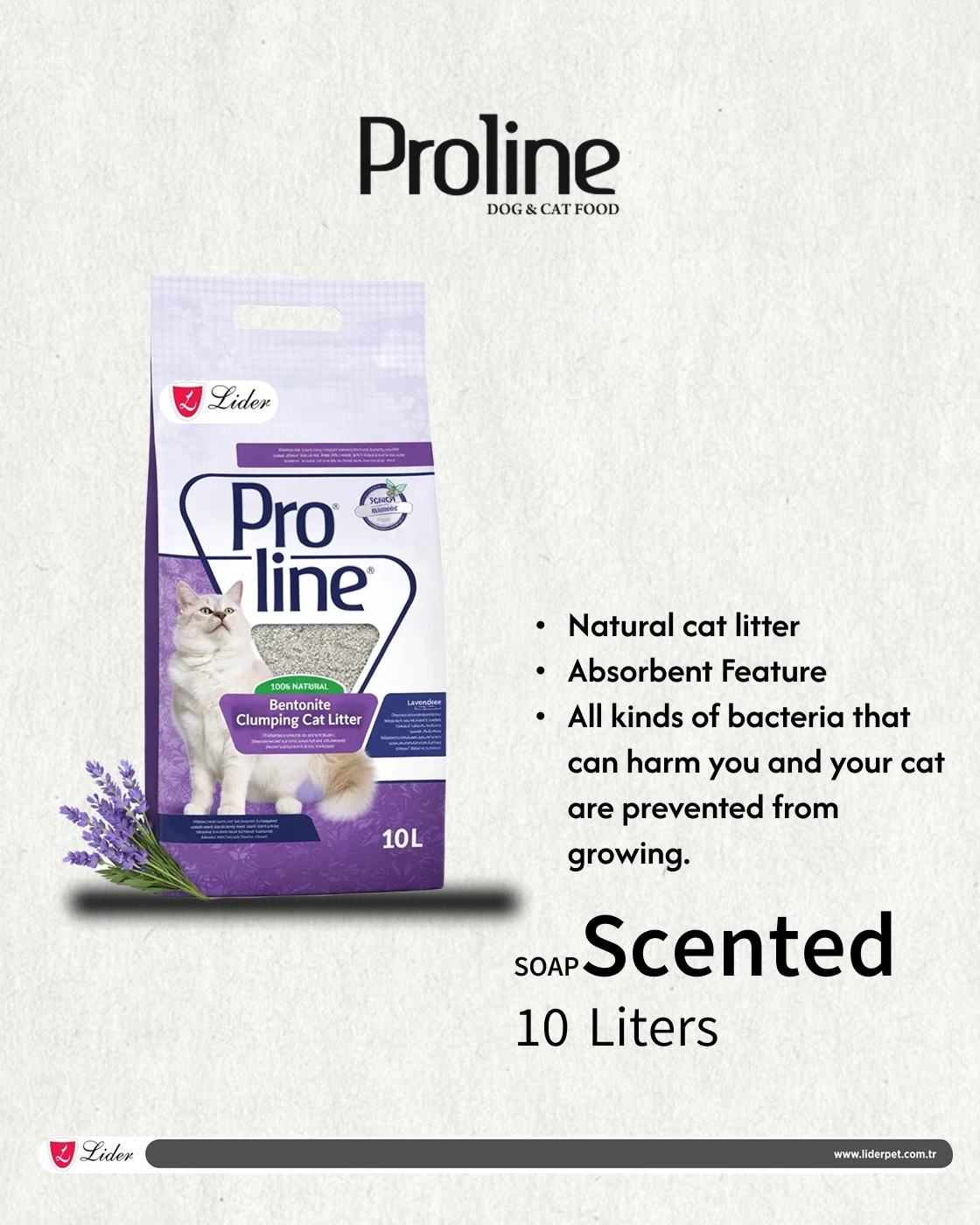 Proline Lavender Scented Cat Litter is a 100% natural bentonite clumping litter that instantly forms tight clumps to trap urine and odor. The calming lavender scent helps to neutralize odors and create a relaxing atmosphere in your home. The thin grain shape of the litter helps to prevent tracking, and the litter is non-toxic and safe for your cat.