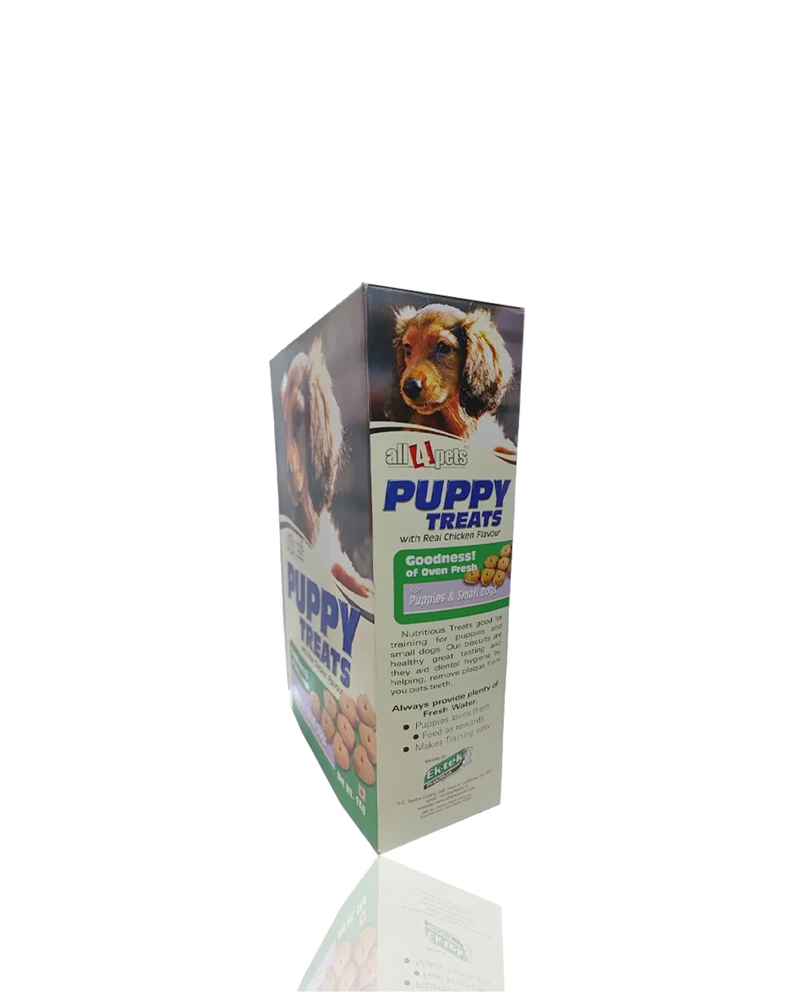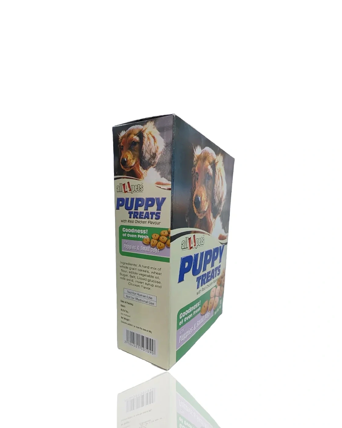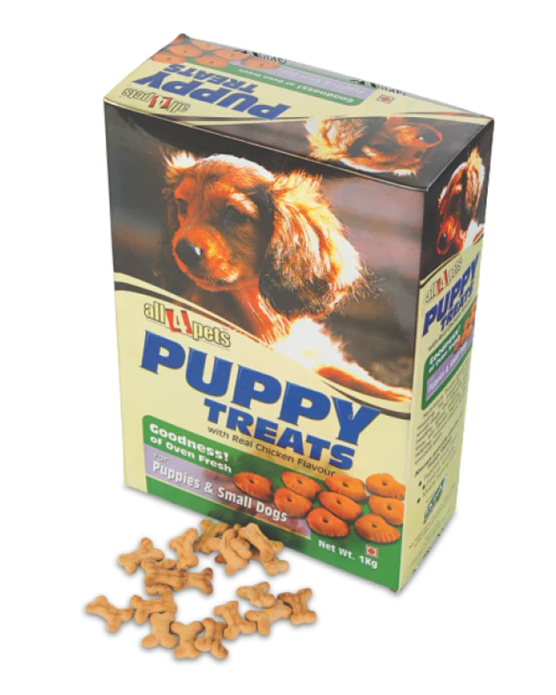 All4Pets Puppy Treats are nutritional dog biscuits specially crafted for puppies and small dogs. These crunchy, oven‑fresh treats feature real chicken flavor, making them an irresistible snack for training, rewarding, or simply showing your furry friend some love. Made with wholesome ingredients, they help keep your little companion active, healthy, and happy.