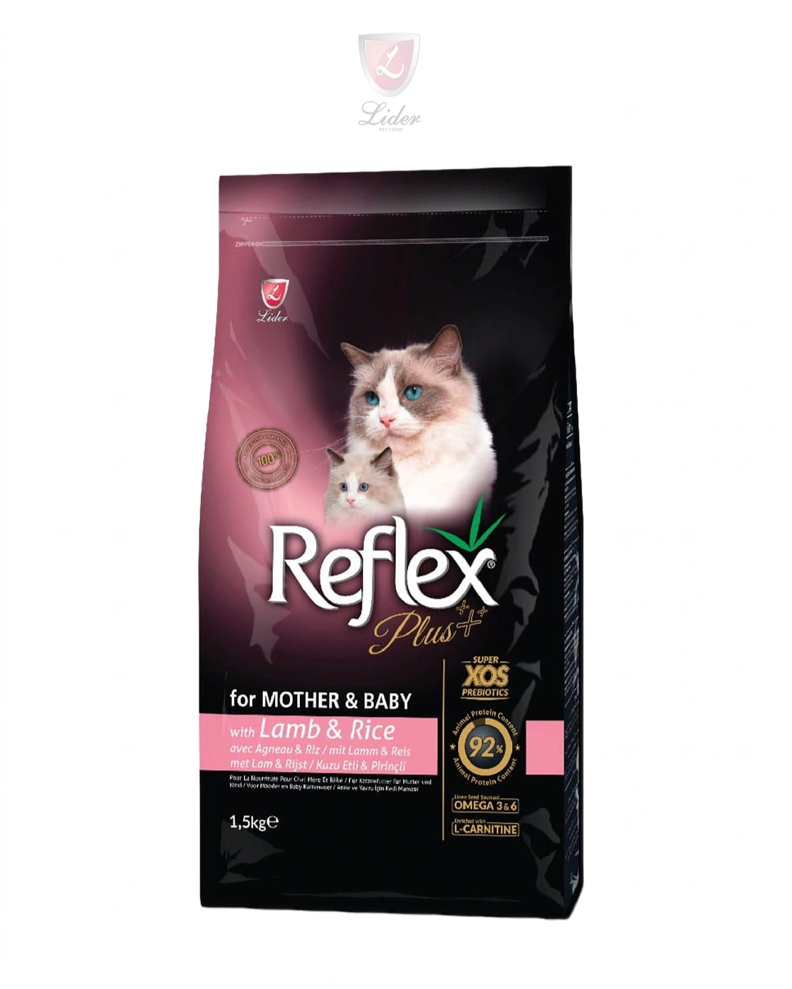 Give growing kittens and nursing mothers the best start in life with Reflex Plus Mother & Baby Cat Food (Lamb & Rice) . This super-premium, complete and balanced dry food is specially formulated for pregnant and lactating queens, as well as kittens from 2 to 12 months of age.