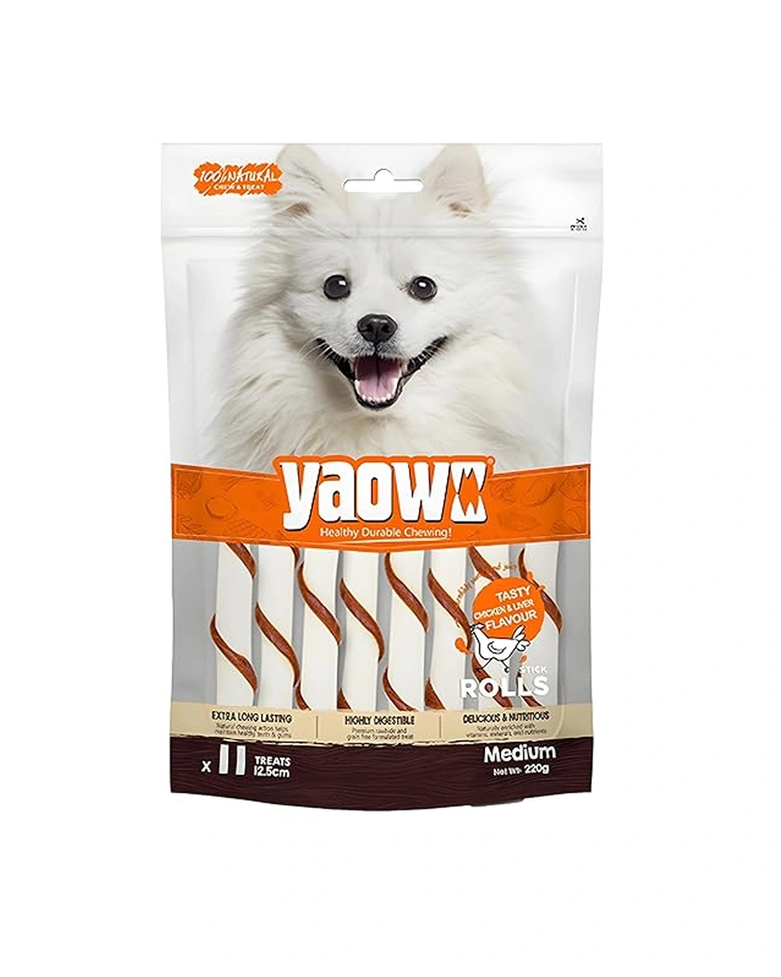 Yaowo 2.5 Inch Stick Roll is a natural rawhide dog treat filled with chicken, designed for dogs of all life stages (from 2 months onwards). These durable, 100% digestible sticks promote healthy teeth, strong bones and joints, and healthy skin and coat. Made from high‑quality rawhide, wheat starch, soy protein, and natural chicken flavoring, they provide a high‑protein, low‑cholesterol snack that keeps dogs engaged for hours. Ideal for daily training, fetch games, and rewarding, these sticks are suitable for all dog breeds.